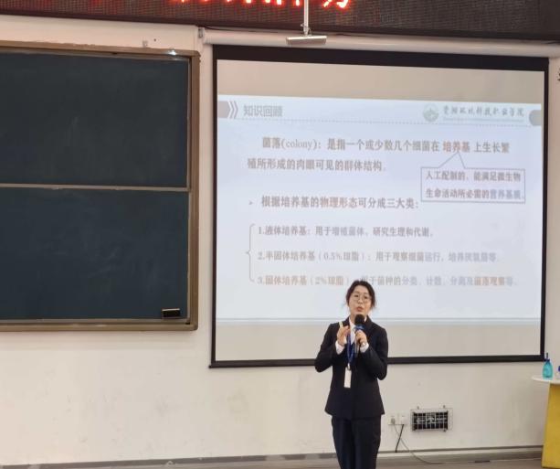课堂教学展示环节是本次活动的核心。郭春会、张丽两位教师围绕《环境微生物》同一课程同一章节,分别开展40分钟的教学展示。两位教师备课充分、教学设计各具特色,郭春会教师注重实操性, 结合专业案例拆解知识点,引导学生主动思考;张丽教师侧重理论与实践的融合,通过互动提问激发学生学习热情,两节课虽教学思路不同,但均紧扣课程核心目标,展现了扎实的教学功底和良好的课堂掌控能力。