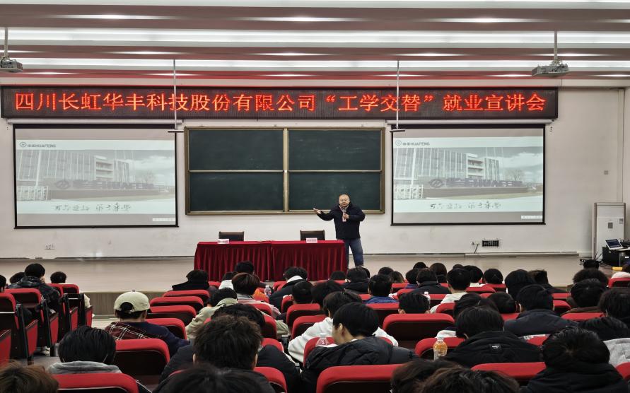 2025年12月16日,四川华丰科技股份有限公司(以下简称“华丰科技”)受邀走进生态环境学院,面向24级环境工程1-5班220名学生开展专场宣讲会。活动在C103教室举行,华丰科技人事经理杜谨辰、生态环境学院副院长黄相玲共同参与,围绕企业需求、人才培养及产学研合作展开深度交流。