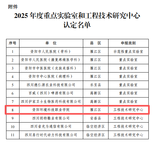 我校工程技术研究中心获市级认定 赋能资阳绿色发展