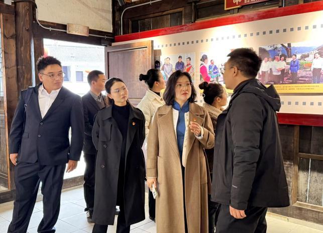 在李邦裕副镇长陪同下,宣讲调研团一行实地参观石椅村村史馆,重温习近平总书记殷殷嘱托,集中学习观看 2023 年春节前夕习近平总书记在北京通过视频连线看望慰问石椅村干部群众的珍贵影像资料,深刻感悟总书记对民族地区基层干部群众的亲切关怀与对乡村全面振兴的殷切期望。