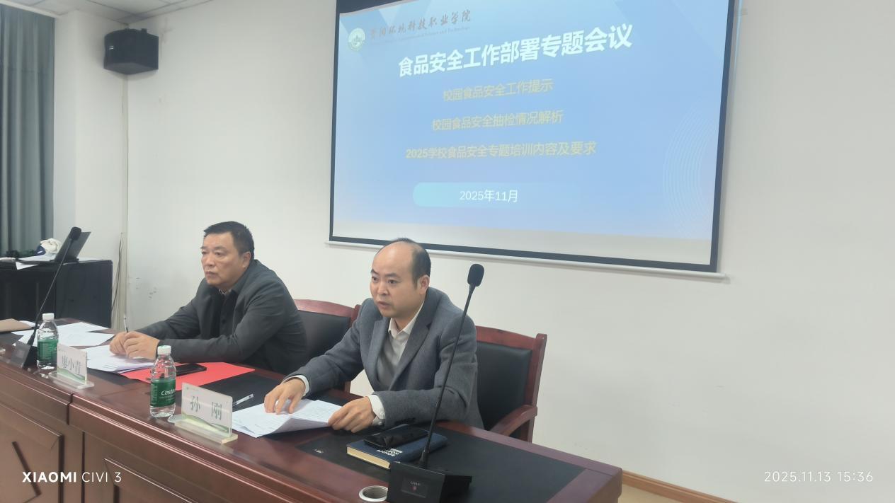 为切实保障全校师生饮食健康与校园安全稳定,近期,我校召开食品安全专题会议。分管副校长廖小青、后勤处处长孙刚、食品安全管理员、食堂负责人及关键岗位员工、校园食品商户负责人参加会议。